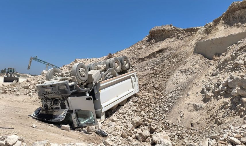 Adana'nın Ceyhan ilçesinde hafriyat döküm sahasındaki zeminin kayması sonucu devrilen kamyondaki sürücü yaşamını yitirdi.