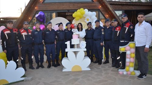 Adana'nın Kozan ilçesinde jandarma ekipleri, şehit Nurettin Yaşar'ın kızı Nare Lina'nın 1. doğum gününü kutladı.