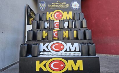 Adana'da kaçak 30 şişe içki, sahte içki yapımında kullanılan 445 litre etil alkol ve 1165 aroma kiti ile pompalı tüfek ele geçirildi.