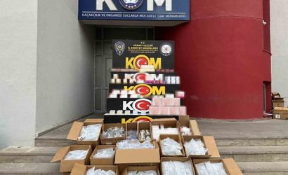 Adana'da Seyhan ve Yüreğir ilçelerinde bulunan merdiven altı iki muayene yerine düzenlenen operasyonda, çok sayıda kaçak malzeme ele geçirildi.