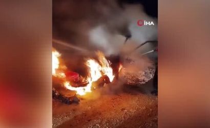 Adana'nın merkez Sarıçam ilçesine bağlı Buruk Mahallesi'nde seyir halindeki, plakası öğrenilemeyen otomobil henüz bilinmeyen bir nedenle patlayıp yanmaya başladı.