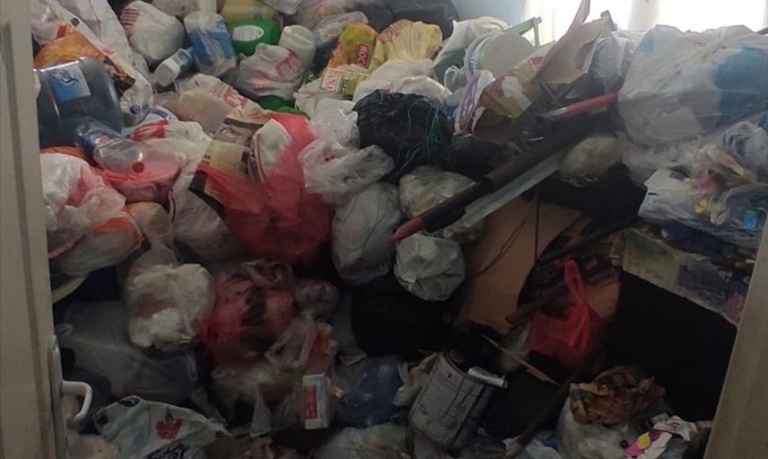 Yapılan temizlikte, 2 yıl önce de temizlik yapıldığı öğrenilen evde biriktirilen yaklaşık 11 ton çöp 2 kamyona yüklenerek kaldırıldı. Atıkların tahliyesinin ardından evde ilaçlama yapıldı.