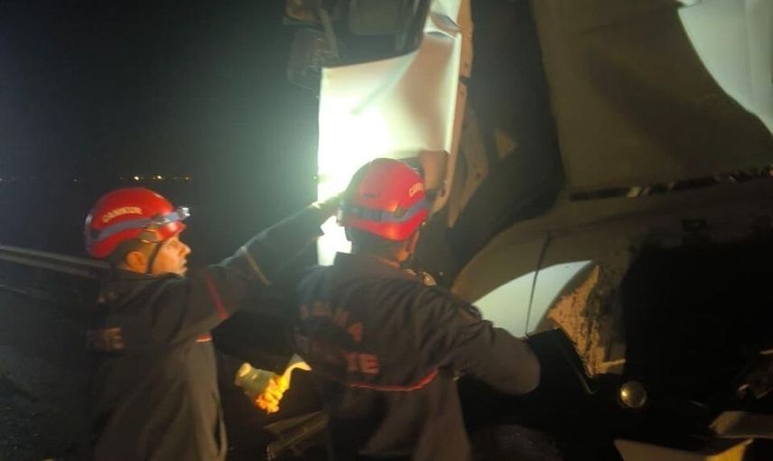Kazada otobüste bulunan 13 kişi ile tır sürücüsü kabinde sıkışarak yaralandı. İhbar üzerine olay yerine sevk edilen itfaiye ekipleri, ağır yaralanan tır sürücüsünü uzun süren çalışmanın ardından çıkararak sağlık ekiplerine teslim etti.