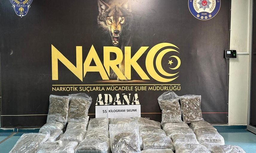 Adana'da tırda 55 kilogram skunk ele geçirildi