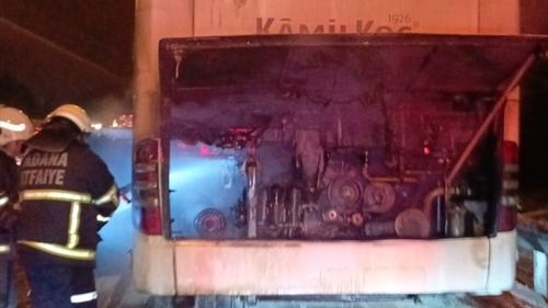 Adana'da Yangın Çıkan Yolcu Otobüsünde Hasar Oluştu