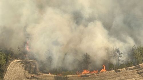 Adana İmamoğlu Üçtepe Mahallesi'nde çıkan orman yangınına Orman Bölge Müdürlüğü ekipleri, söndürme helikopteri ve arazözlerle havadan ve karadan müdahale ediliyor.