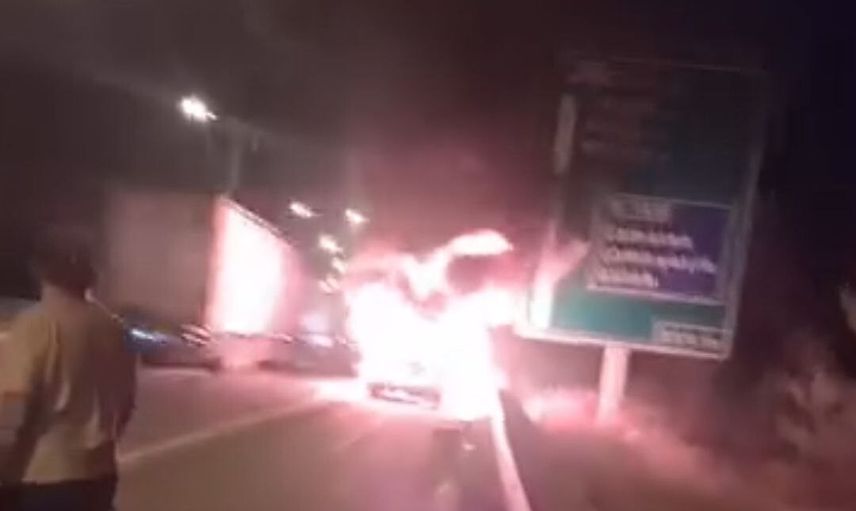 Sürücü aracı güvenlik şeridine çekerek durdurdu ve itfaiyeyi aradı.