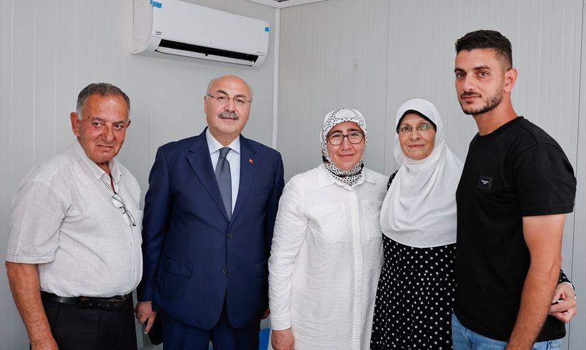 Adana Valisi Yavuz Selim Köşger (sağ 2), Gazze'den tedavi amacıyla kente getirilen Filistinlilerin aileleriyle bir araya geldi. Köşger, eşi Fatma Köşger (ortada) ile tedavi gören Filistinlilerin ailelerini geçici olarak konakladıkları konteyner kentte ziyaret etti.