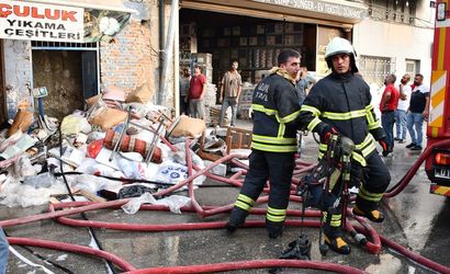 Yangında iş yerinde hasar meydana geldi. Ekipler, dükkan ve çevresinde soğutma çalışması gerçekleştirdi.