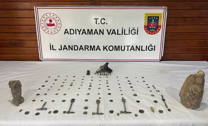 Adıyaman'da tarihi eser kaçakçılığı operasyonunda 4 şüpheli yakalandı. Operasyon düzenleyen ekipler, tarihi eser niteliğindeki 84 sikke, 2 heykel, 12 tarihi obje ve tabanca ele geçirdi.