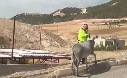 Adıyaman'da trafiği tehlikeye düşüren eşeğe polis müdahalesi