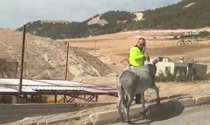 Adıyaman merkezinde, karayolunda ilerleyerek sürücülerin güvenliğini riske atan bir eşeğe polis ekipleri müdahale etti.