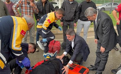 Milletvekili İshak Şan, kazada yaralanan kadına müdahale ederken, yanında bulunan AK Parti Adıyaman Milletvekili Mustafa Alkayış de ona yardımcı oldu.