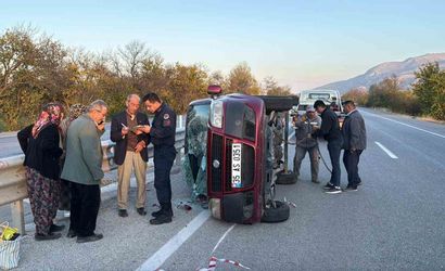 Afyonkarahisar'da hafif ticari araç devrildi: 4 kişi yaralanmadı