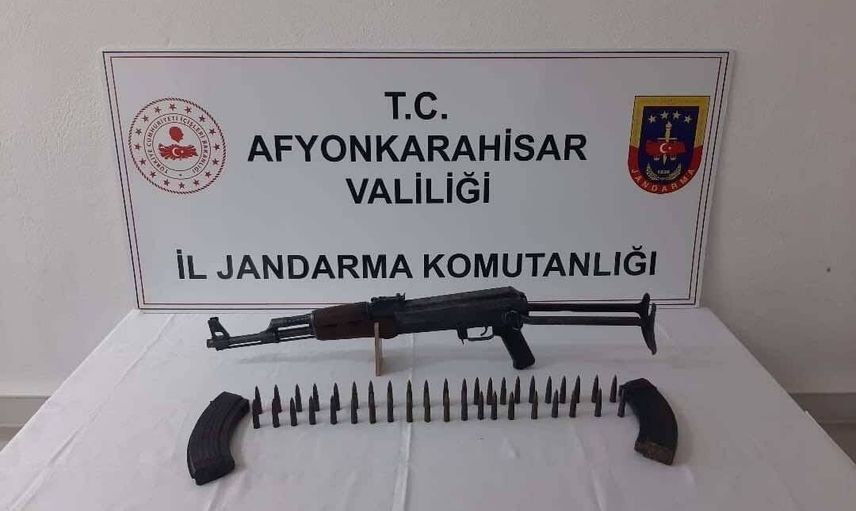 AFYONKARAHİSAR’DA JANDARMA TARAFINDAN ŞÜPHE ÜZERİNE DURDURULAN BİR ARAÇTA YAPILAN ARAMADA KALAŞNİKOV TÜFEK ELE GEÇİRİLDİ.