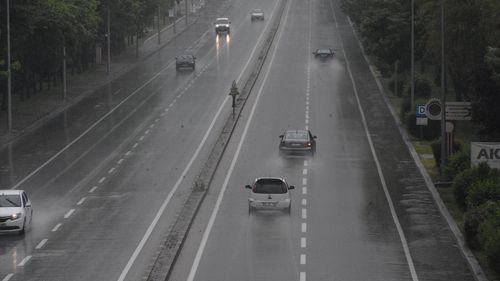 Afyonkarahisar'da etkili olan sağanak yağışlar, su birikintilerine yol açarak sürücülerin dikkatli olmasını gerektiriyor.