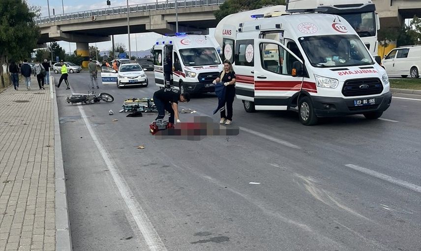 Afyonkarahisar'da gerçekleşen kazada, Ü.K. idaresindeki 43 AFP 883 plakalı tır, merkez Konya köprülü kavşakta seyir halindeki O.S.E.'nin kullandığı 03 ADL 504 plakalı motosiklete çarptı.