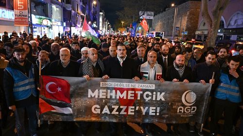 AGD Üyeleri Fatih'te Gazze İçin Seslerini Yükseltti Anadolu Gençlik Derneği (AGD) üyeleri, İsrail'in Gazze'ye yönelik saldırılarını protesto etmek amacıyla bir araya geldi. Fatih Camisi'nde yatsı namazının ardından toplanan grup, sloganlar eşliğinde Saraçhane Meydanı'na yürüdü. Filistin Davası ve Birliktelik Mesajı Kuran-ı…