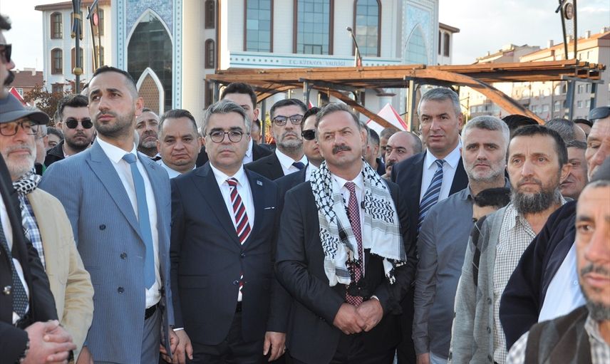 Zafer Meydanı'nda esnaf ziyaretinde bulunan Ağıralioğlu, Filistin'e destek için düzenlenen programa katıldı.