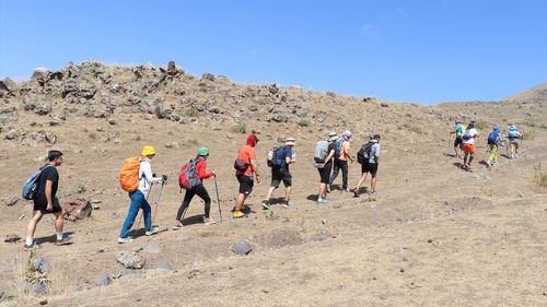 Ağrı Dağı'nda dağcılar, 3 günlük zorlu tırmanışla 5.137 metre zirvesine ulaşmak için kar ve buzul örtüsünde mücadele ediyor.