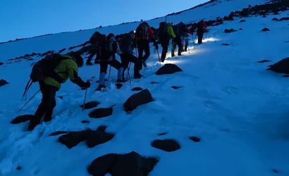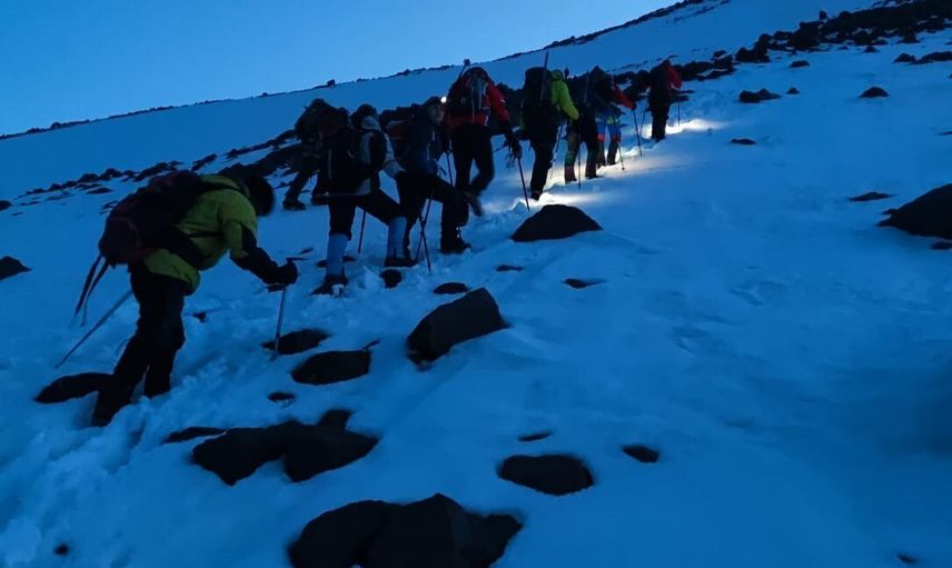 Rehber Cuma Saltık ile 9 kişilik ekip zirveye yürüyor