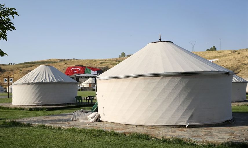 Bitlis'in Ahlat ilçesinde Türklerin Anadolu'ya girişini sağlayan Malazgirt Zaferi'nin 954. yıl dönümü kutlamalarının daha görkemli yapılması için hazırlıklar tamamlandı. Üzerinde ve iç kısmında Selçuklu motiflerinin yer aldığı keçeden yapılmış Han Otağı ile tematik çadırların bulunduğu alan, etkinlikler için hazır hale getirildi.