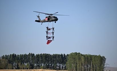 Bitlis'in Ahlat ilçesinde düzenlenen Malazgirt Zaferi'nin 954. yıl dönümü kutlamalarında Jandarma Genel Komutanlığı ekiplerince sunulan "Çelik Kanatlar" ve "Üzüm Salkımı" helikopter gösterileri yapıldı.