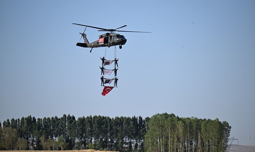 Jandarma Genel Komutanlığı ekiplerinin sunduğu Çelik Kanatlar ve Üzüm Salkımı helikopter gösterileri de alanı dolduranlar tarafından büyük ilgiyle izlendi.