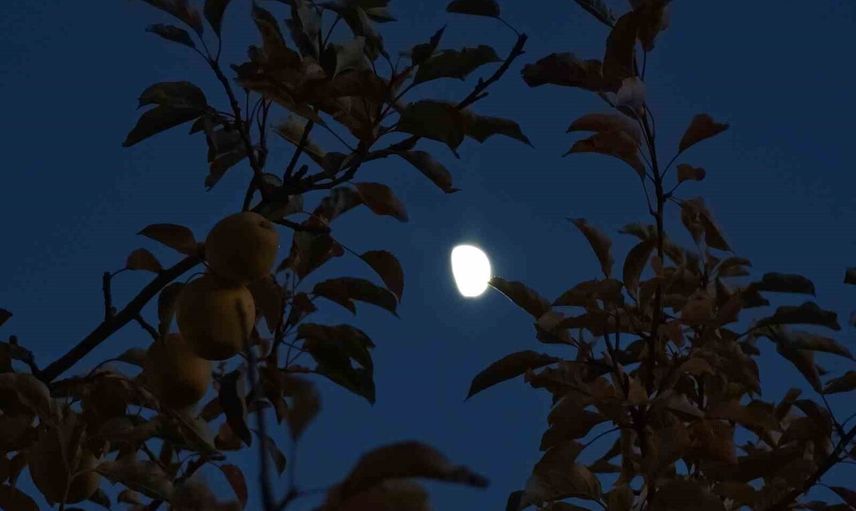 Ağaç dalları arasından belirginleşen yarım ay manzarası, doğa tutkunları ve fotoğraf severlerin yoğun ilgisini çekti.
