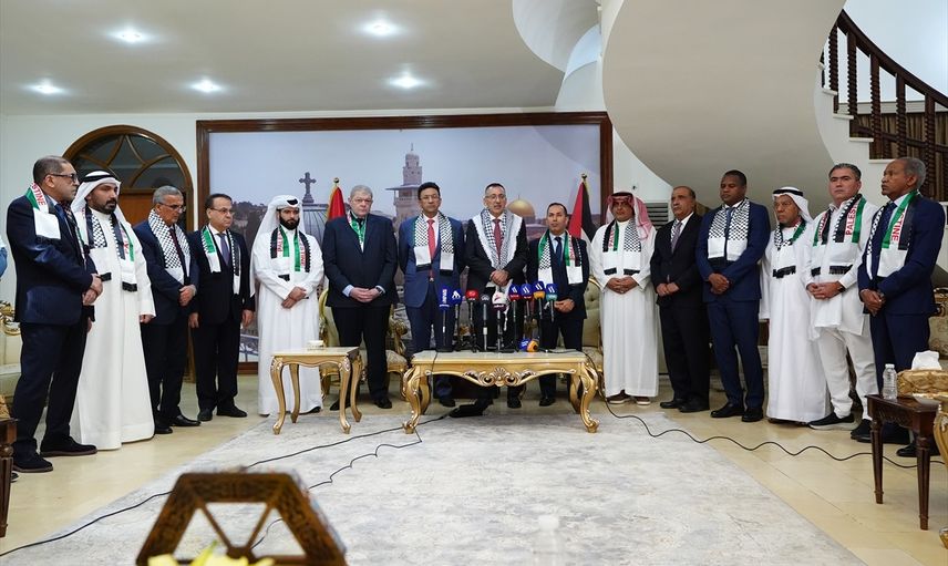 Son günlerde çok sayıda ülkenin Filistin Devleti'ni tanıması dolayısıyla Filistin'in Bağdat Büyükelçiliğinde bir etkinlik düzenlendi. Filistin'in Bağdat Büyükelçisi Ahmed er-Ruveydi'nin (solda) ev sahipliğinde düzenlenen etkinliğe Irak'taki Arap ülkelerinin büyükelçileri de katıldı.