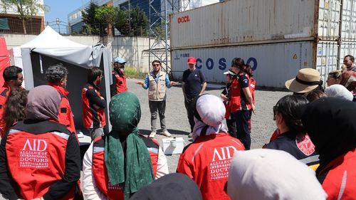 AID Uluslararası Doktorlar Derneği, afet durumları için mobil sahra hastanesi tatbikatı gerçekleştirdi. Gönüllüler eğitim aldı.
