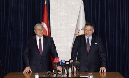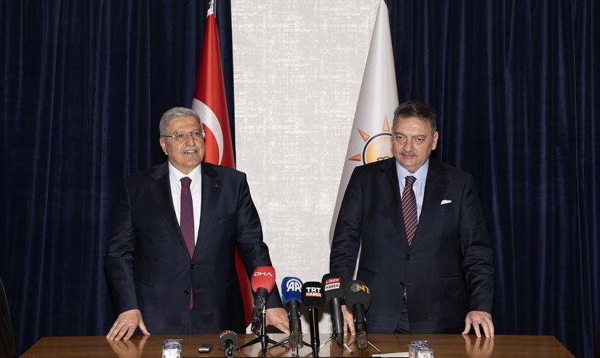 Vedat Demiröz (solda), AK Parti Genel Merkez Mali ve İdari İşler Başkanlığı görevini, AK Parti Mali ve İdari İşler Başkanlığında düzenlenen törenle Ahmet Baha Öğütken'e (sağda) devretti.