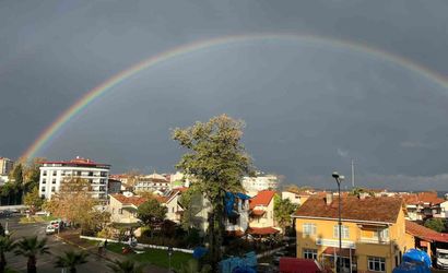 İlçe merkezinde sabah saatlerinde etkili olan yağışın hemen ardından, Kent Merkezi üzerinde belirgin bir gökkuşağı oluştu.