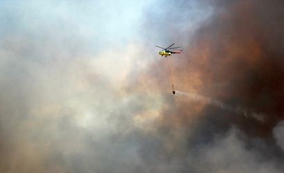 Manisa'nın Akhisar ilçesinde çıkan orman yangınına havadan ve karadan müdahale ediliyor. Bölgeye İzmir Orman Bölge Müdürlüğüne bağlı 2 uçak, 4 helikopter, 10 arazöz, 2 su tankeri ve 2 dozer sevk edildi.