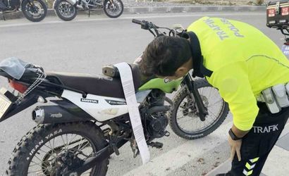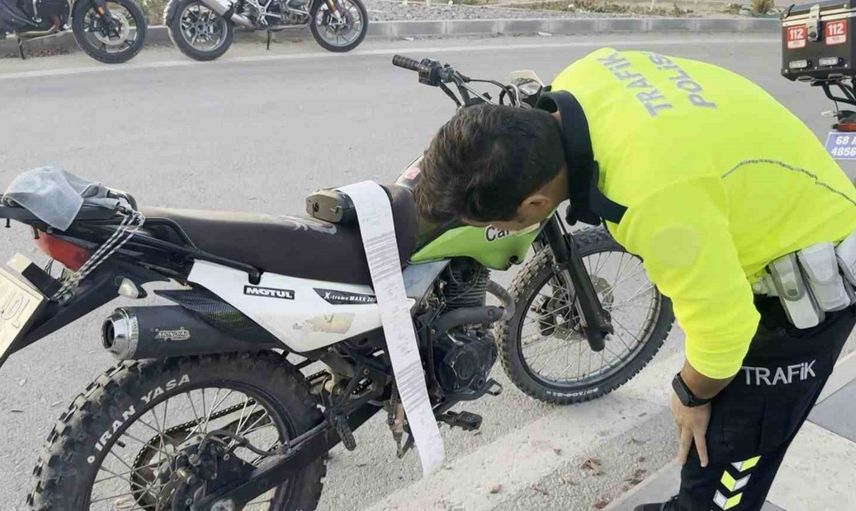 Trafik ekipleri, motosiklet üzerinde yaptığı incelemede H.C.A.'ya dur ihtarına uymamak, ters yönde seyretmek, plaka kapatmak, ehliyetsiz araç kullanmak, sigorta ve muayene eksikliği maddelerinden toplam 45 bin 746 lira para cezası kesti.