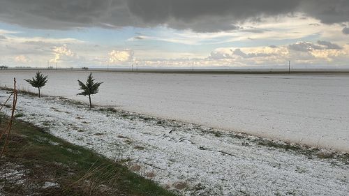 Aksaray'ın Eskil ilçesinde dolu yağışı, hayatı olumsuz etkileyerek yolları ve tarlaları beyaza bürüdü.