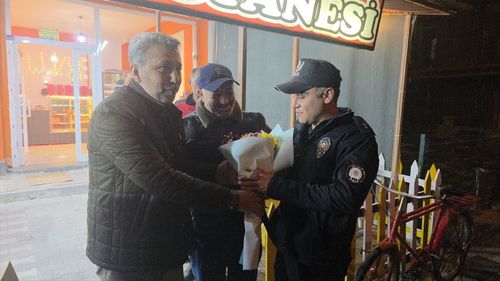 Aksaray'ın Eskil ilçesinde polisler, kavga ihbarına gidecekleri esnada sürpriz kutlama ile karşılaştı.