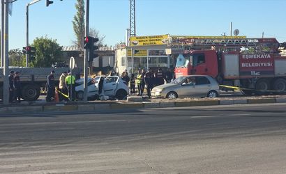 Aksaray'ın Eskil ilçesinde tıra çarpan otomobildeki anne hayatını kaybetti, oğlu yaralandı.
