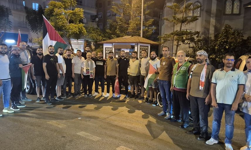 Dernek üyeleri Hacımemişler Camisi'nde bir araya gelerek araçlarına Türk ve Filistin bayrakları astı ve konvoy oluşturdu.