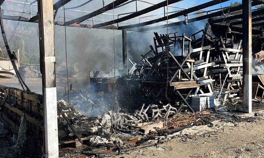 Yangında büfe içinde bulunan masa ve sandalyeler kullanılamaz hale geldi.