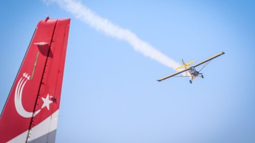 Akrobasi pilotu Ali İsmet Öztürk, 5 yaşındaki torunu Pars Şener ile 180 bg Husky A1-B uçağıyla Sivrihisar Hava Gösterileri'nde gösteri uçuşu yaptı.