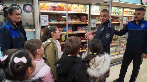 Aliağa Belediyesi Zabıta Müdürlüğü, Petro-Kimya İlkokulu 2-E sınıfı öğrencilerini "meslekler" kapsamında ağırladı; sunum, saha denetimi ve broşür dağıtımı yapıldı.