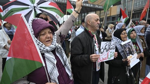 Berlin'de, Nekbe'nin 77. yılı dolayısıyla İsrail'in Gazze'ye yönelik saldırıları protesto edildi, kalabalık bir topluluk bir araya geldi.