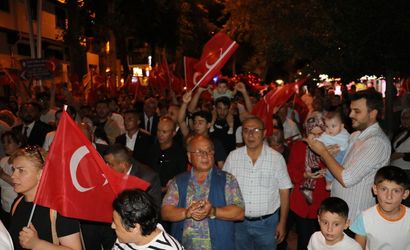 Vatandaşlar, alkışlar ve coşkulu sloganlarla Yavuz Selim Meydanı'na kadar yürüdü; kortej boyunca bayrak ve meşale görüntüleri dikkat çekti.