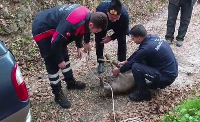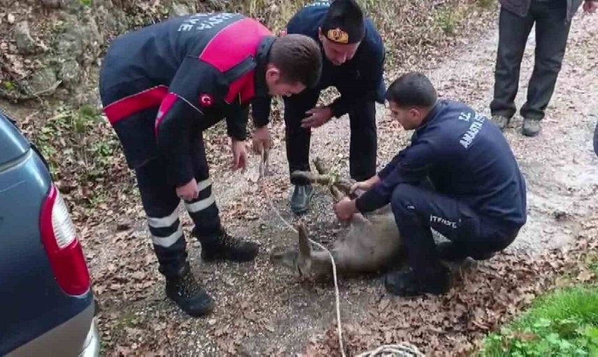 Amasya'da yavru karaca itfaiye tarafından kurtarıldı