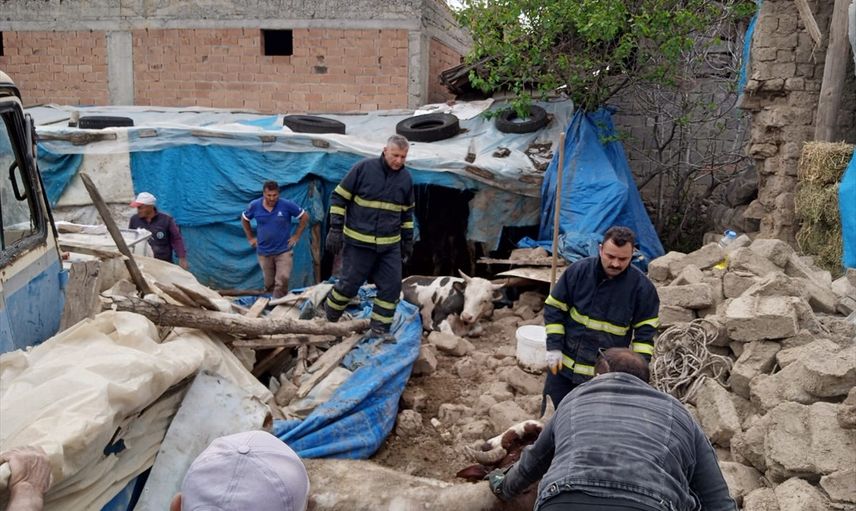 Amasya'nın Merzifon ilçesinde çatısı çöken ahırda mahsur kalan 2 büyükbaş hayvan itfaiye ekiplerince kurtarıldı.