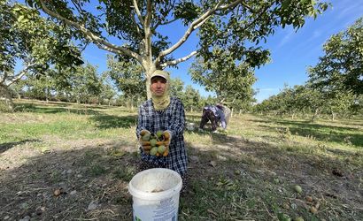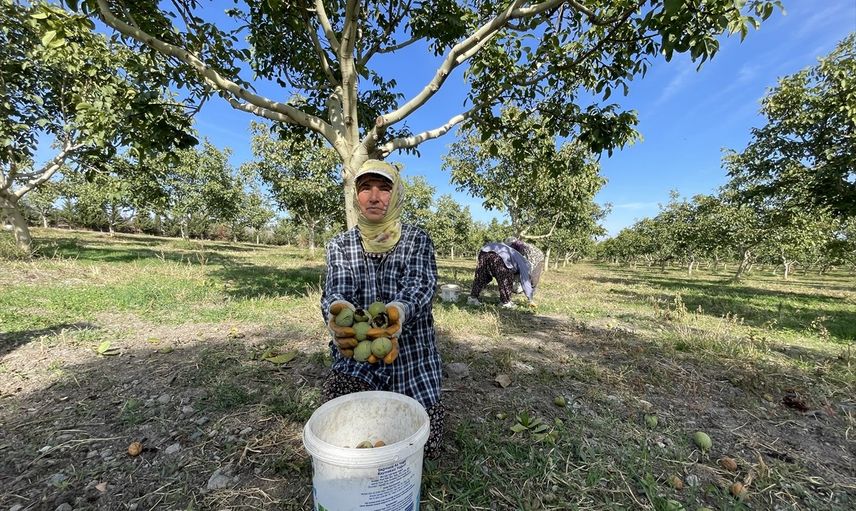 Merzifon'da üreticiler sabahın erken saatlerinden akşama kadar ceviz topluyor