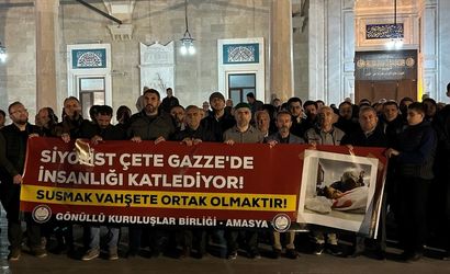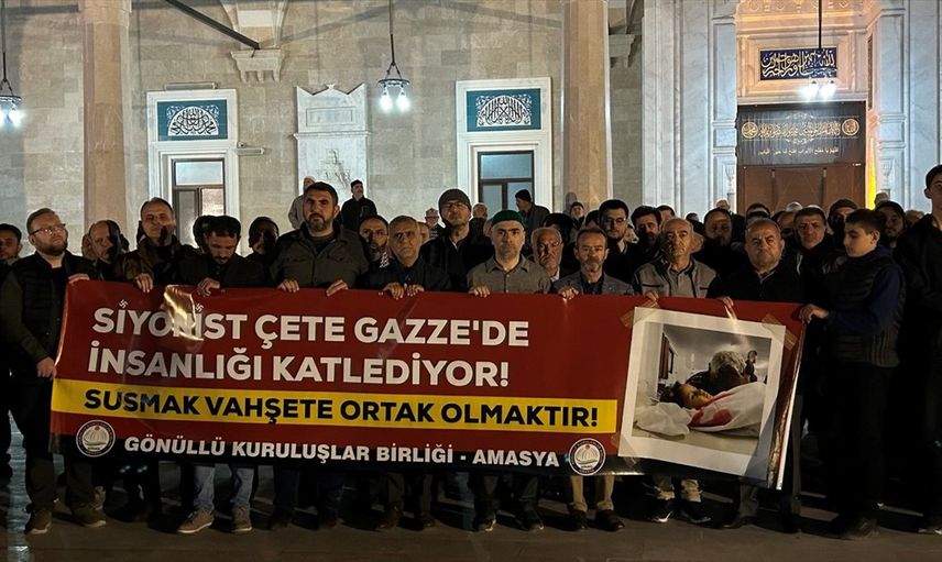 Amasya'da İsrail'in Gazze'ye yönelik saldırıları protesto edildi. Amasya GÖKBİR Platformu tarafından düzenlenen program kapsamında Hazreti Ömer Camisi'nin avlusunda bir araya gelen kalabalık, pankart açarak slogan attı.