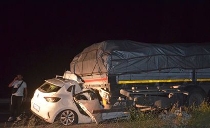 Amasya'nın Merzifon ilçesinde tıra çarpan otomobildeki 5 kişi yaralandı.