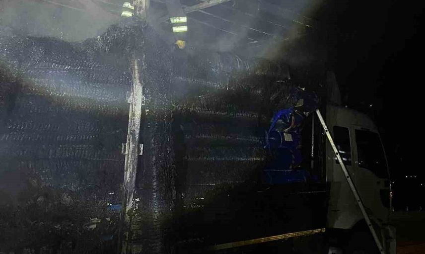 Kamyonda büyük çapta maddi hasar meydana gelirken, yangının çıkış nedenine ilişkin inceleme başlatıldı.